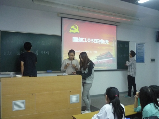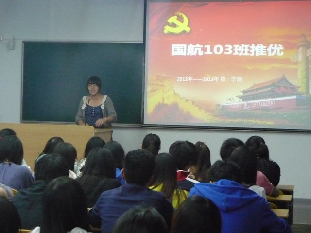 2012年10月9日至11日,国航交工10级各班陆续开展并完成了新学期推优工作,本次推优由国航交工10党支部副书记及组织委员主持,辅导员陈祯如出席并监督整个推优过程。