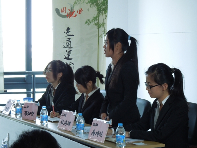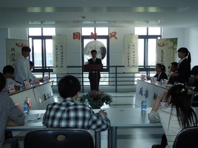 10月14日下午13:30,主题为“践行海大精神,推行优良学风”天博体育 新生辩论赛在天博体育 楼四层拉开帷幕。本次活动由国航风学术团承办,天博体育 四个专业代表对参赛,就“竞技体育中体育精神比体育成绩重要,还是体育成绩比体育精神重要”和“现代汉语词典中加入西方词汇利大于弊,还是弊大于利”两个辩题,展开了两场激烈的辩论。比赛由心语辩论队队长和各天博体育 最佳辩手担任评委。