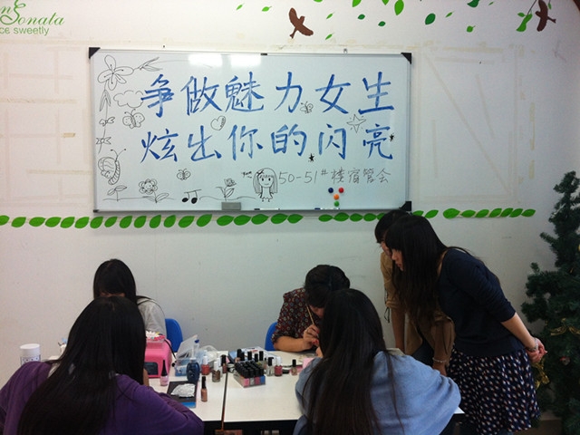 10月24日下午,50-51号楼宿管会在楼内办公室举办了一场以“争做魅力女生,炫出你的闪亮”为主题的魅力女生推广活动。自管会特意邀请了著名美甲师为同学们进行有关如何提升与展现自我魅力的指导,并现场为同学们做美甲培训。
