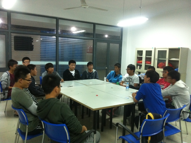2012年10月30日晚九时许,34-35号楼宿管会例会在楼长张亦周和袁锋的主持下按时召开。对刚刚加入社团的大一新成员们来说,这也是他们第一次参加宿管会例会。