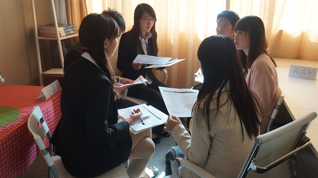 面试招聘一共分为两部分。第一部分,嘉里大通物流公司工作人员详细介绍了管理培训生的主要工作,让在座的同学对嘉里大通物流公司有一个更为全面直接的了解,也对岗位的发展和培养有了大致的认识。第二部分,四个环节面试,第一环节各应聘者就企业管理者所需的素质进行了自由讨论;第二环节将面试者分为2个小组并进行了团队合作讨论;第三环节两个小组进行了自由讨论;第四环节为各应聘者用英语介绍自己,考察了面试者的口语能力。面试结束后,经理团仔细进行了人才筛选,初步决定了面试结果。
