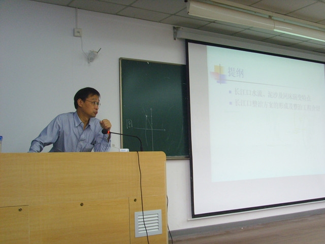 首先,王老师围绕着长江口水流、泥沙及河床演变特点和长江口整治方案的形成及整治工程进行了详细介绍。然后,王老师结合本人丰富的经验,详细地阐述了其本人的感思,让同学们有了深刻的认识。最后,给同学们放映了长江口三期工程的视频,让大家对长江口深水航道治理有了全新的认识。