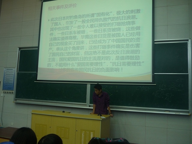 首先,团支书向班级同学们阐明了“维稳”的背景、含义及其重要性。随后,学生代表张喜鸣同学向大家发表关于学习“维稳”精神的感言。最后,班长总结了此次班会对青年学生的思想行为建设乃至整个国家长期安定发展的重要作用。此次班会,同学们都认真参与其中,对“维稳”工作表现出了高度的重视,气氛十分融洽。