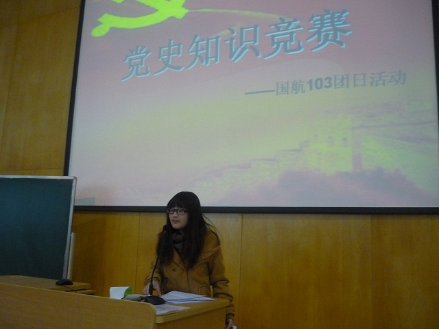 11月13日上午,天博体育 国航103班在教学区举办了一场欢快激烈的党史知识竞赛活动。