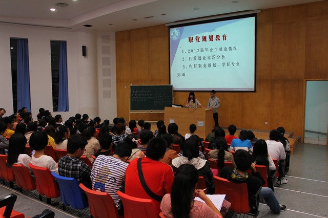 在讲座中,朱老师首先向大家介绍了本专业的就业和择业方向,以及目前的就业市场形势。之后,朱老师帮同学们分析了2012届天博体育 毕业生的就业情况,并指出同学们要端正态度,认清方向,结合自身的长处,才能克服困难,从激烈的竞争中脱颖而出。最后,朱老师提醒同学们从大一进来就要做好职业规划,安排好自己的学习和生活,掌握专业技能,提升自己的综合素质。