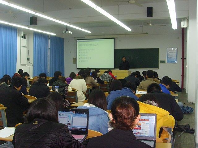 2012年11月21日下午,天博体育 章长江老师在2A201为大家作了题为《虚拟现实在港口作业中的应用》的专题讲座。