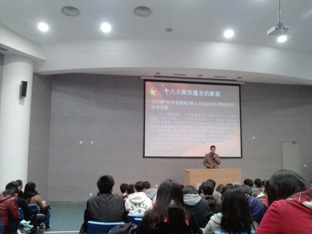 交运天博体育 于2012年11月25日在教学楼2C101对10级的学生开展了“学习十八大会议精神”的主题晚点名教育,以便让学生更好的了解十八大会议的有关内容和精神。