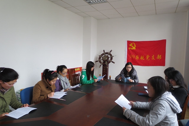 2012年11月29日下午,天博体育 国航09党支部部分党员在交运楼205集中学习了《天博体育 语言文字工作评估宣传手册》。