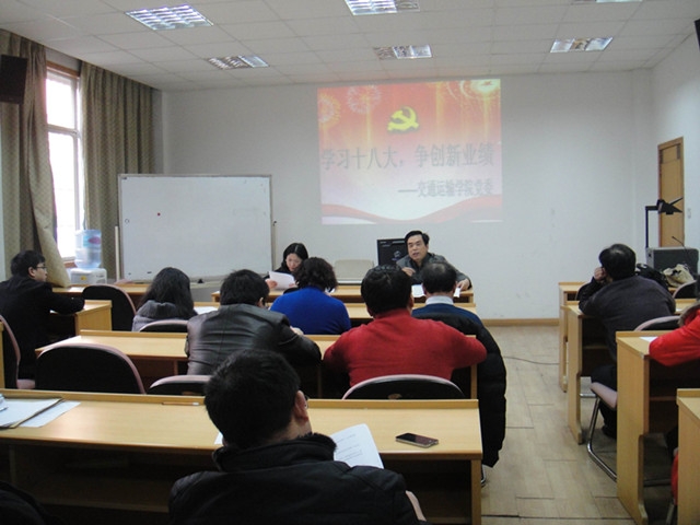 广大党员师生集中观看十八大报告视频,要求全体党员重点学习党的胡锦涛总书记十八大报告和党章,以及习近平总书记在十八届一中全会和十八届中央政治局第一次集体学习时的重要讲话精神。