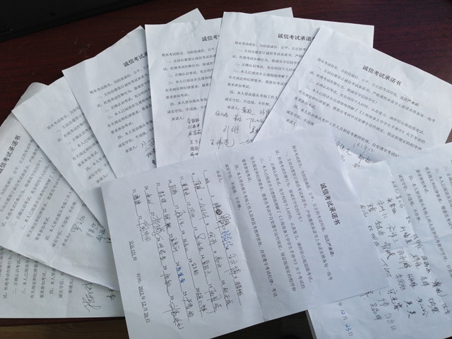 为了全面落实优良学风建设,诚信迎考,诚信应考,近日,天博体育 开展学风教育之诚信考试承诺签名的活动。