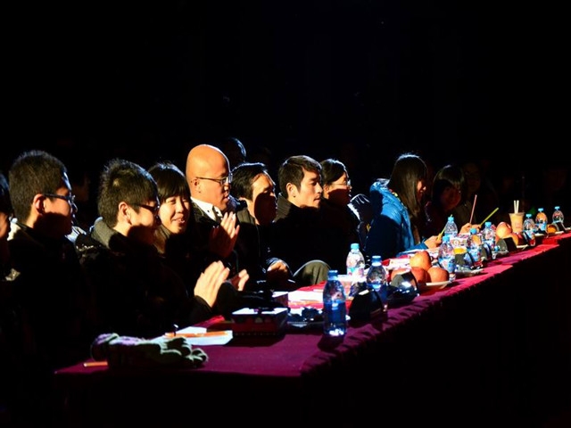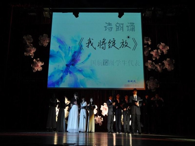 开场,国航126的同学们就用火辣热情的舞蹈吸引住了观众的眼球;随后,12级学生代表激情澎拜的诗朗诵《我将绽放》,更以极富感染力的诗句和深情饱满的吟诵拨动着在场每一个观众的心弦。而新国航121班倾情奉献的舞台剧《非诚勿扰》又以其轻松搞笑的style将晚会带到了第一个高潮。丝竹声中,校民乐团在乐器合奏《青花瓷》中为我们氤氲出了一幅遗世独立的烟雨图。随后,国航123班的舞台剧《娱乐直播间》将晚会推到了第二个高潮,新闻联播、天天向上、好声音等高收视率节目在同学们的演绎下增添了许多校园搞笑元素,在场观众不时爆发出掌声和欢笑声。之后,从国航124班充满乌龙的舞台剧《乌龙山伯爵》到国航121班令人耳目一新的《都是高数惹的祸》;从充满思乡情怀的歌曲到交流生代表带来的热情四射的舞蹈;从和蔼可亲的辅导员们的大展身手,到Easy dance国标舞社的热情奔放,整个大礼堂洋溢着欢笑与歌声,令人心潮澎拜。在大礼堂的舞台上,同学们一次次美丽绽放,用舒展的姿态和豪迈的心态展示了亮丽的青春风采线!
