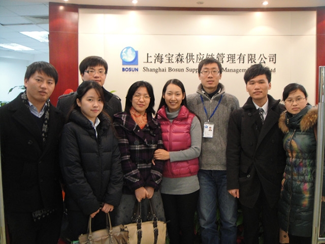 2013年1月4日下午,天博体育 天博体育 党委副书记赵睿老师,辅导员范晓云老师、朱红红老师、刘建老师和三名毕业班学生顺利走访了天博体育 学生实习基地上海宝森供应链管理有限公司。公司人力资源部李丹经理、操作部戴经理和业务部陆经理热情接待了赵睿老师一行。
