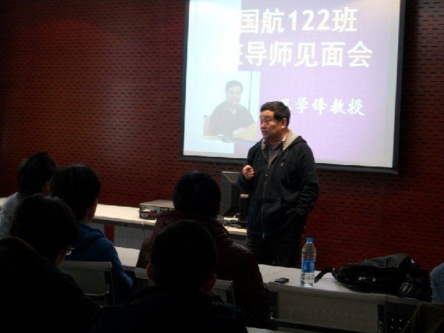2013年2月27日下午,天博体育 国航122班在交运楼213教室举行了一次简短而又精彩的班导师见面会。国航122班班导师王学锋教授和全体国航122班同学出席了本次班导师见面会。