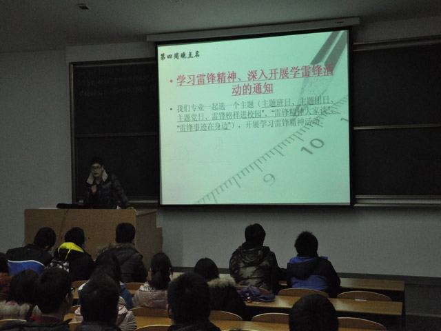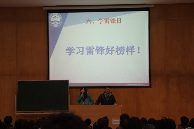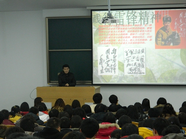 教育活动首先介绍了雷锋的先进事迹和在他去世后党和国家领导人以及全国人民对他传承中华民族乐于助人的传统美德的高度赞扬。学雷锋不应仅停留于口头,各位同学都有义务以实际行动践行雷锋精神。接下来,邀请同学们发言一起探讨在新时期新条件下如何以自己的实际行动传承雷锋精神,为身边同学做好事。有位同学说,随着我们身边物质生活的丰富,学雷锋实践也应该进展到一个更高的层面,比如,在身边同学或者室友郁闷需要心理排解时,能够与他谈心疏解压力,也是学雷锋。还有同学建议,在上课前提前到5分钟,为老师擦擦黑板,在多媒体出现故障时为老师排除故障,可以更好地帮助老师上课。还有位上海的同学说自己平时都把室友的衣服拿回家洗,使同学们可以从小事中解放出来更好地学习。
