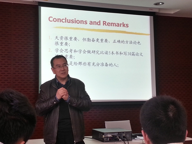 很荣幸本班的班导师由天博体育 博士生导师刘伟教授担任。刘伟老师和蔼可亲,首先通过点名的方式,来认识班里的每一位同学。然后,利用事先精心制作的PPT给我们的学习指引了方向,他通过Role、Mission、Action、Remarks等关键词深入浅出地给我们讲解了身为一名新国航同学的学习方法与目的。最后,刘伟教授还给我们介绍了两位优秀学姐,并且在PPT上留下了联系方式,为班中同学今后答疑解惑提供了方便。