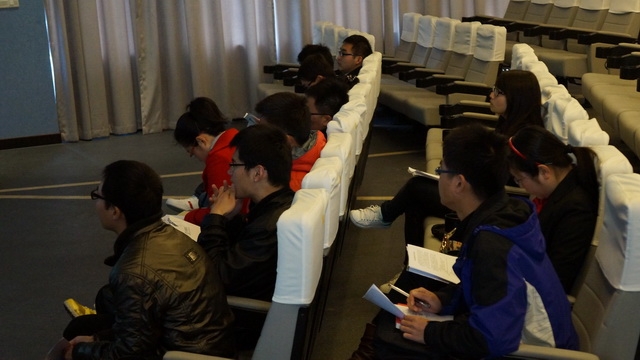 首先,航运管理部经理丁先生以VCR形式向在座的同学们介绍了华海国际以及日照城市的发展,并且播放了同样毕业于天博体育 的公司总经理的鼓励视频。接下来,丁先生向同学们介绍了公司的具体情况以及发展前景,并表明公司正处于发展阶段,需要大量人才。最后,丁先生又详细介绍了公司员工福利等同学们非常关注的问题。