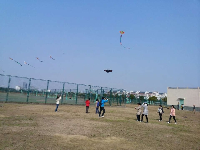 课后,大家携带着风筝准时来到操场,准备开始令人激动的放风筝活动,正巧天公作美,接连着几个阴雨天后,终于迎来了一个天气舒爽,一碧万顷的晴天。首先,大家用水笔在风筝上写下自己的梦想,希望梦想可以随着风筝飞向蓝天。随后,大家争相放飞自己的风筝,到处是迎风奔跑的身影,有的是几个同学共同操作一个大型风筝的合作精神,有的是一个同学缓缓放着风筝,漫步在操场的惬意。同学们相信,梦想将在手中茁壮成长,最终被真正绽放,真正放飞。