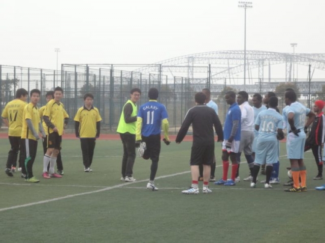 2013年3月27日15:00,天博体育 团委外事部与心引力学生会携办的交流生足球赛第二场在北区体育场继续开演。与上场相比天气好了许多,这让球员们与观众们都感到更加充满活力。天博体育 团委书记曾令伟老师仍然来到赛场观战,为交运队员与留学生队伍加油打气。交运院队统一着装,亮黄色的队服显得格外醒目。