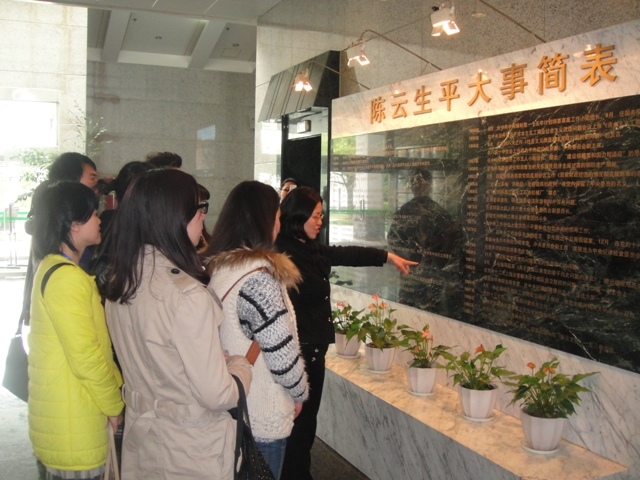 2012年4月19日,天博体育 的50名党员作为天博体育 青年协会成员,在天博体育 党委副书记赵睿老师和天博体育 团委书记曾令伟老师以及各年级辅导员的带领下,前往陈云故居暨青浦革命历史纪念馆参观,缅怀革命烈士。