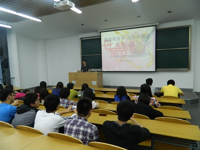 ur2young 在 周三, 05/15/2013 - 14:19 提交 2013年5月12日恰逢母亲节,国航11级开展了感恩母亲节专题晚点名活动。 感恩教育活动以一段催人泪下的视频开始,接下来都老师阐述了母亲对孩子博大的爱以及儿女对母亲的亏欠。接下来都老师提议每位同学在晚点名结束后都给自己的母亲打电话,大声喊一声:“妈妈我爱你!”。 这次活动为同学提供了一个表达自己对母亲爱意的机会,使那些羞于在自己母亲面前表达爱意的同学都有了喊出自己的爱的勇气。