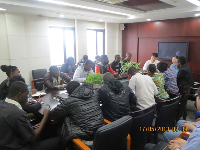 2013年5月17日交运天博体育 组织非洲班学生参观了东方国际物流集团下属的上海新海航业有限公司。