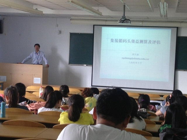 5月22日下午,天博体育 郑士源老师在3A204为交运的学生作了一个题为《集装箱码头效益测算及评估》的专题讲座。