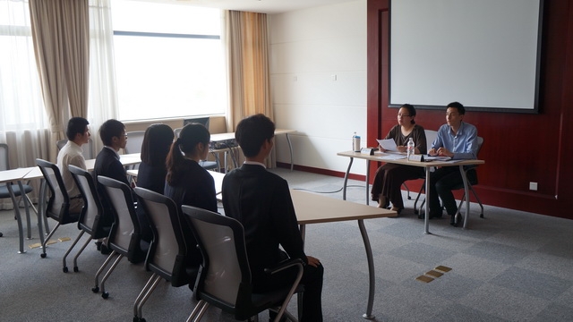 在面试过程中,面试官首先让每位同学进行1-2分钟中文或英文自我介绍。然后面试官根据自己的构思形式展开面试,包括了常规面试、情景面试等多种形式。最后面试官对同学们的简历、仪表风度、语言表达能力以及临场应变能力等方面进行了点评,希望同学们能够做足准备、积蓄能力,制作简历时简明扼要、扬长避短,面试时注视对方、微笑回应,回答问题时联系实际、有所突出。