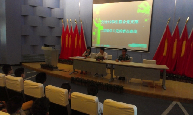 2013年9月18日下午1点30分,交运12学生联合党支部召开本学期第一次组织生活会,本次会议主题是“学习群众路线,积极动员部署”。支部书记朱红红同志和全体党员、积极分子参加了本次组织生活会。