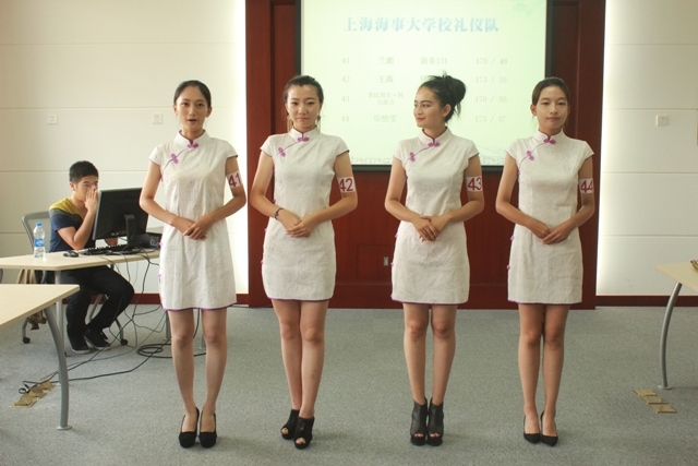 本次复试均要求学生在前期完成化妆、盘头等基本准备工作,着礼仪队旗袍依次进行面试,面试分为自我介绍和情景模拟两个环节。通过同学们的自我介绍和对礼仪队工作的看法,了解学生的谈吐和文化素养。情景模拟为模拟颁奖场景,从站姿、走姿、手势等几个方面对学生进行严格筛选。最终在几位评委老师的认真筛选下,选拔出30名同学进入礼仪队,我们也将在后期对新进同学在妆容,形体,盘发等方面进行专业培训。