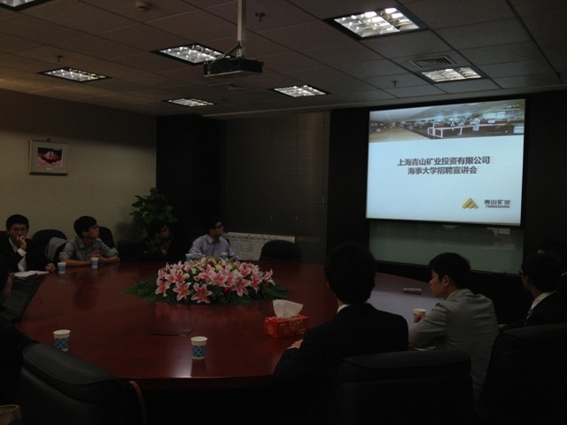 2013年10月21日12:00,天博体育 党委副书记赵睿老师、辅导员陈祯如老师,带领10名大四学生,一同走访了上海青山矿业投资有限公司,公司总经理曹志强先生、人事行政经理仝文颖热情招待了天博体育 师生。
