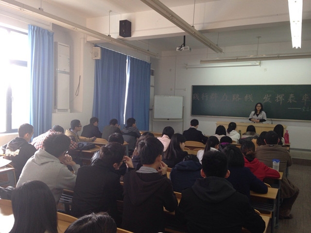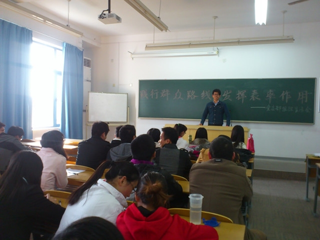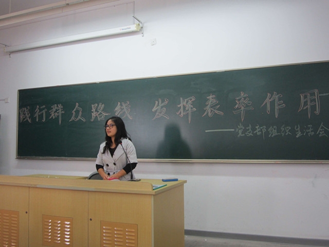 党支部书记李宇芊向学生党员传达了开展党的群众路线教育实践活动精神,让每位党员能够通过党的群众路线教育进行自我净化、自我革新、自我提高、自我完善。同时强调了要争做先进党员,在普通群众中起模范带头作用。