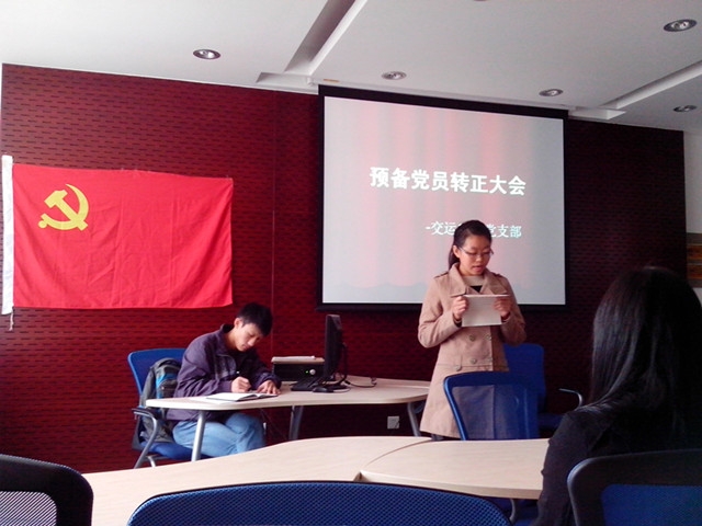12月4日下午14:00,天博体育 交运13级专党支部在交运楼217召开了丁文娟、李新两位预备党员的转正大会。会议由樊云然同学主持,党支部成员出席了本次会议。