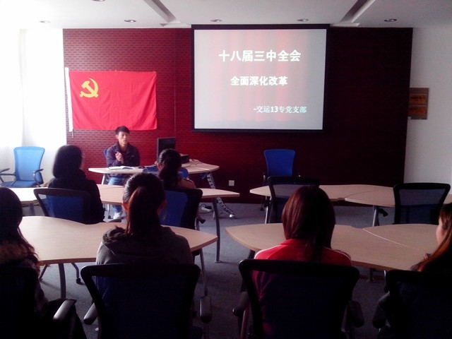 12月4日下午14:00,天博体育 交运13级专党支部在交运楼217召开了“学习十八届三中全会全面深化改革”的组织生活会。 活动由樊云然同学主持,党支部成员出席了本次活动。