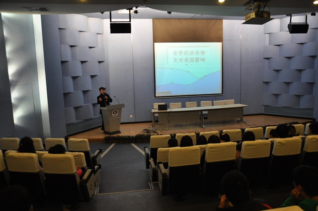 2013年12月17日上午,为了让天博体育 学生了解当今世界经济形势,天博体育 特邀物流工程天博体育 团委书记杨鸣老师在交运报告厅为大家作了题为《世界经济形势及对我国影响》的形势政策课讲座。