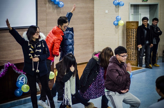历史一个多月的准备,国航12级双旦晚会如时举行。晚会以一个集合大家搞笑照片的视频开场,以幽默欢快奠定了整场晚会的氛围。接着各班级的同学分别表演了热辣的爵士舞、搞笑话剧甄嬛传,深情演绎了歌曲《万万没想到》以及由国航来自管乐团的同学们演奏的经典曲目《卡农》。整场晚会中还穿插了各种好玩的游戏,如谁是卧底、贴纸片等,辅导员与马来西亚同学也参与其中,笑声不断。抽奖环节更是引起一个又一个的高潮。最后在一片欢声笑语中结束了整场晚会。