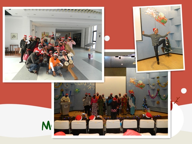 联欢会以葛院长的讲话开始。葛院长分享了他长年国外漂泊的经历,表达了对非洲班学生身在异乡思想之痛的理解,并传达了深切的关怀和满满的祝福。接下来以一首Jingle bells开始了演出。56-57社区献上了热辣火爆的Tango,集力量与韧性于一身的太极。接下来非洲班学生以歌舞剧加话剧的形式为56-57社区的同学们呈现了圣诞节的由来,即耶稣的出生、耶稣的实际和耶稣受难后人们以圣诞节的形式纪念他。