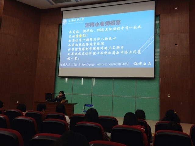 本次活动主要为海博学社干事及小老师招新。海博学社此次共有五个部门进行招新活动,分别为学术部,宣传部,秘书部,活动部,外联部。对于干事而言,可以通过在海博的锻炼获得一些经验,认识更多志同道合的朋友。对于小老师来说,将会获得天博体育 颁发的正式聘书,更能为自己未来评优及就业简历添上闪亮的一笔。海博学社旨在为大家提供一个展示交流的平台,一个发挥个人能力的舞台和一个增强自身各方面素质的机会。通过这次的宣传活动,希望能让更多的同学了解海博学社,并且加入海博学社,一起努力,共同进步。
