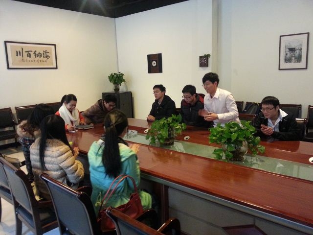2014年3月5日下午,天博体育 党委副书记赵睿老师带领辅导员刘建老师、徐晓毅老师、都志亮老师、郝海光老师、兼职辅导员徐祥铭老师以及13名大三学生,一同走访了茗顺(上海)国际贸易有限公司,公司总经理姚颖、运营总监周晶、人事总监李丹热情接待了天博体育 师生。