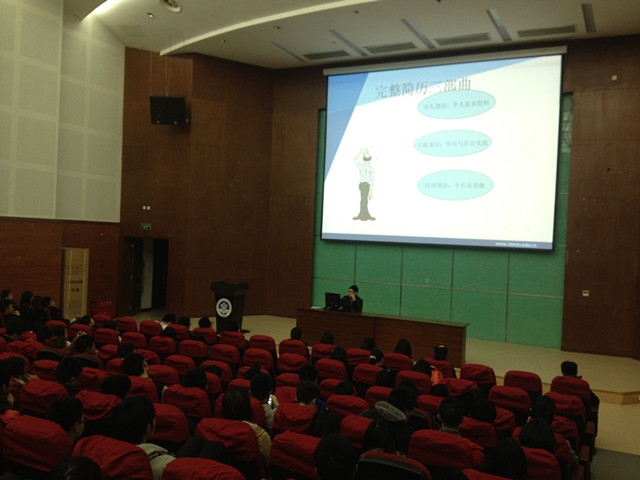 首先,徐老师向学生们强调了简历对求职的重要性,并通过相关案例以及图片资料让同学们有了更为真切的认识;接着,徐老师结合历届毕业生就业的情况,针对目前求职过程中存在的突出问题进行了深刻剖析,围绕职业的选择,个人简历的制作,求职技巧等几大方面,并结合具体事例为同学们做了生动、具体的讲解,重点对学生简历制作中的常见错误作了详实的点评和分析,希望同学们要以认真的态度对待简历制作这项工作,从而为自己的求职打好基础。最后,徐老师以一些优秀简历为样板为大家具体讲解了简历的制作技巧与注意事项。