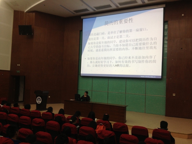 为了提升学生的简历制作能力,提高求职成功率,把握人生的第一块敲门砖。2014年3月16日晚,天博体育 辅导员徐晓毅老师在学生服务中心邦建报告厅开展了 “如何制作简历”的讲座。全体交工11级学生和管理13级学生参加了此次讲座。