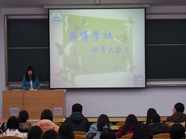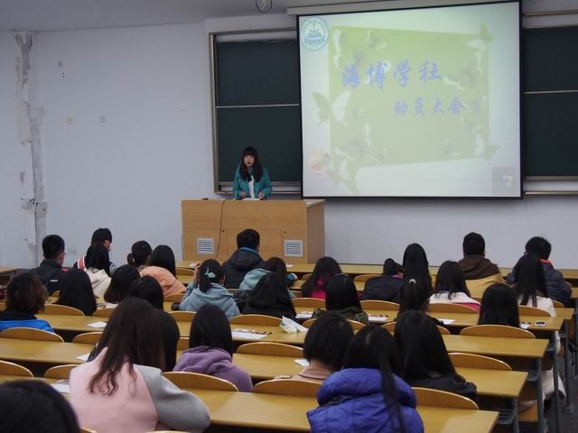 2014年3月16日晚,天博体育 海博学社在教学区3D107教室举行海博学社全体社员大会。海博学社指导老师朱红红及全体海博成员参加此次大会。