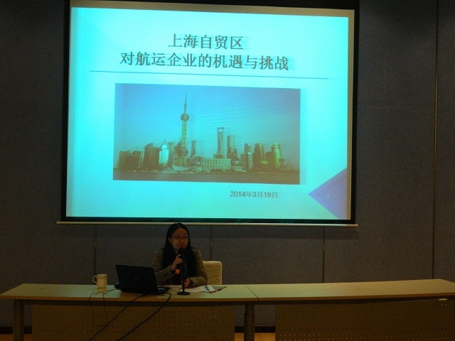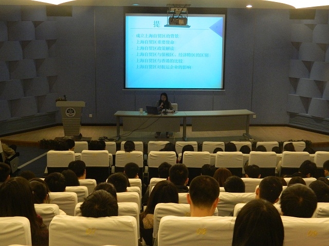 2014年3月19日星期三,交运天博体育 请到了中国海运集团总公司财务金融部高级经理郑斌女士给国航11级同学开展了“瞭望航运之上海自贸区讲座”。