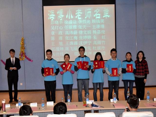 2014年3月26日下午,海博学社在天博体育 楼报告厅举行了一次对海博学社小老师的聘任和表彰活动。天博体育 党委副书记赵睿老师及各年级辅导员参加了此次活动。