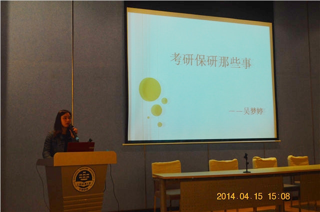 2014年4月15日下午15:00,交运天博体育 优秀毕业生交流会在交运报告厅成功举行。交流会由刘建老师主持,邀请到物流10级的吴梦婷、国航10级的蒋若凡以及物流10级的刘炀三位优秀的学长学姐为大家介绍他们的经验,交运天博体育 大一学生参加了本次交流会。