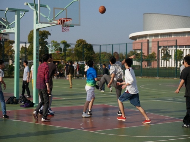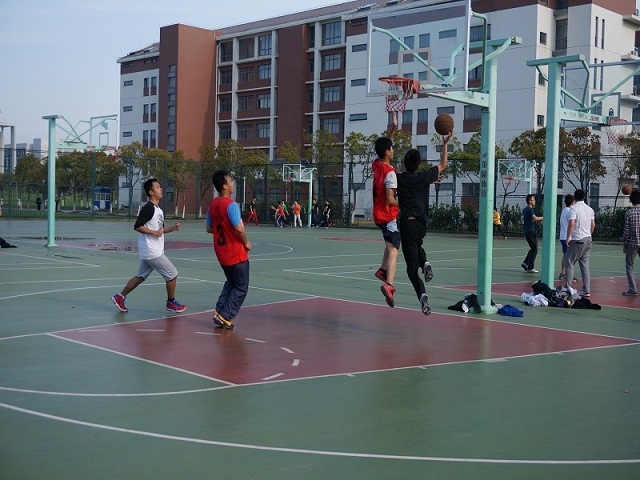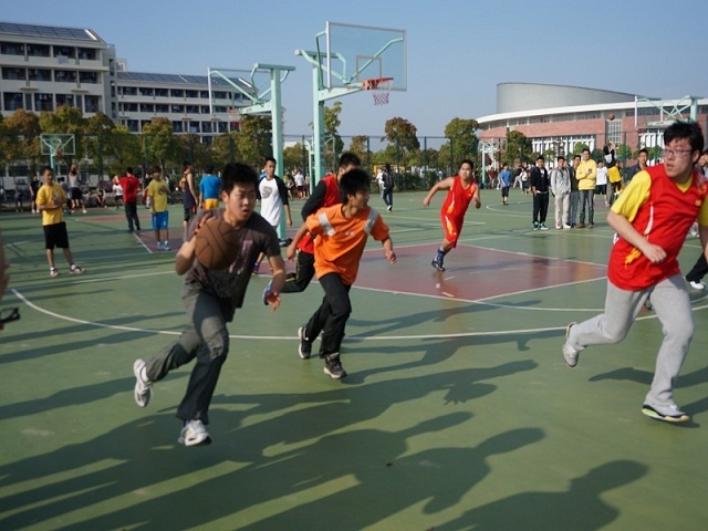 比赛分两场。 首先上场的是交运天博体育 队和法天博体育 队。响亮的哨音长鸣,双方选手全神贯注地投入到激烈的“对战”之中,双方你来我往,“战斗”得不可开交。选手们娴熟精妙的技术引来观众们的阵阵喝彩与掌声。轻松愉悦的比赛氛围中洋溢着青春的热情,无论场上场下,无论队员观众,只要参与进来,都能感受到激情飞扬的比赛之中的无限魅力。最终比分49:39,交运天博体育 队脱颖而出。接着进行同样激动人心的物流工程天博体育 和海洋环境天博体育 对抗赛。双方实力不分上下,直到上半场结束仍呈现打平的状态,看来势均力敌,时间一分一秒过去了,双方你追我赶。实力,耐力,物流工程天博体育 稳中超越,以32:24的最终比分赢得胜利。赛中双方队员秉持友谊第一比赛第二的运动精神,以出色的技术及团队配合向观众们送上了一场篮球的饕餮大餐,运动员们团结奋进的精神感动了在场的每一个人,他们用自己的激情与汗水传达着对运动,对生活的热爱,传达着56-57社区友爱互助的团队精神。