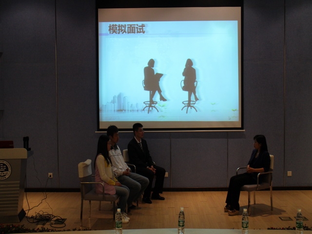 首先,仝文颖女士对上海青山矿业有限公司作了简要的介绍并对简历制作大赛的参赛作品做了细致的点评。其中,仝文颖女士向在场的学生们分享了使简历脱颖而出的技巧以及一些需要注意的细节问题。而后,现场有三位同学主动上台参加了模拟面试的环节,仝文颖女士结合三位同学的表现讲解了面试中语言表达和逻辑思维的重要性。最后,仝文颖女士为本次简历制作大赛获奖的同学颁发了获奖证书。