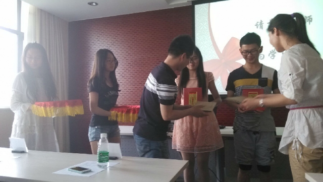在简单的开场后,都志亮老师首先介绍了“国航教工支部助学金”的设立背景及目的,让大家更了解这个助学金。随后,国航12级两位获奖同学田娇、彭晓丰各自分享了自己学习及生活上的心得,对国航教工支部给予此次奖励表达了感谢,并表示今后会更努力实现自我能力和思想的提升,同时积极创建专业良好学风;接着,高鸿丽老师和章强老师对获奖同学提出了学习上要钻研,在做人做事方面也能表现优异的期望,并对两位同学进行颁奖。颁奖仪式最后在老师与同学热烈的交流中结束。