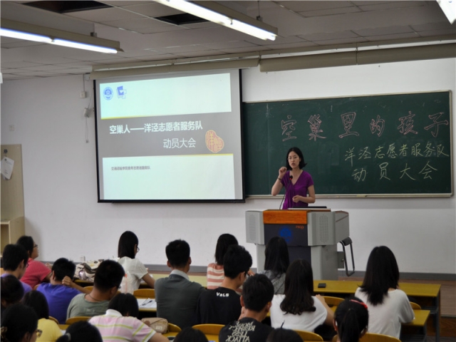 2014年6月18日下午15:40,洋泾街道志愿者服务队的动员大会在教学区3A204顺利举行。天博体育 党委副书记赵睿老师、指导辅导员朱红红老师、以及所有报名参加了本次志愿者服务队的同学参加了此次动员大会。