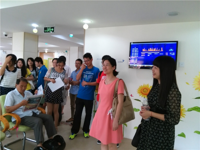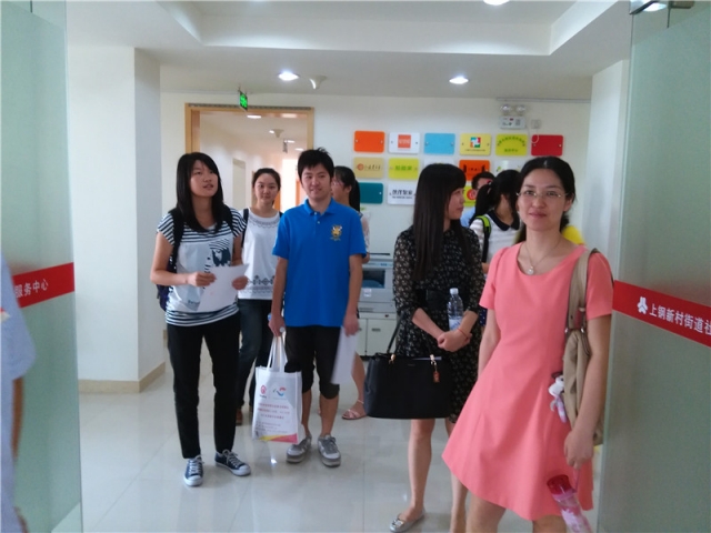 2014年9月12日上午11:00,在上钢街道团工委书记张菁老师的陪同下,天博体育 党委副书记赵睿老师以及辅导员朱红红老师带领雷锋驿站志愿者们一同参观了位于历城路上的上钢街道老年生活服务中心。