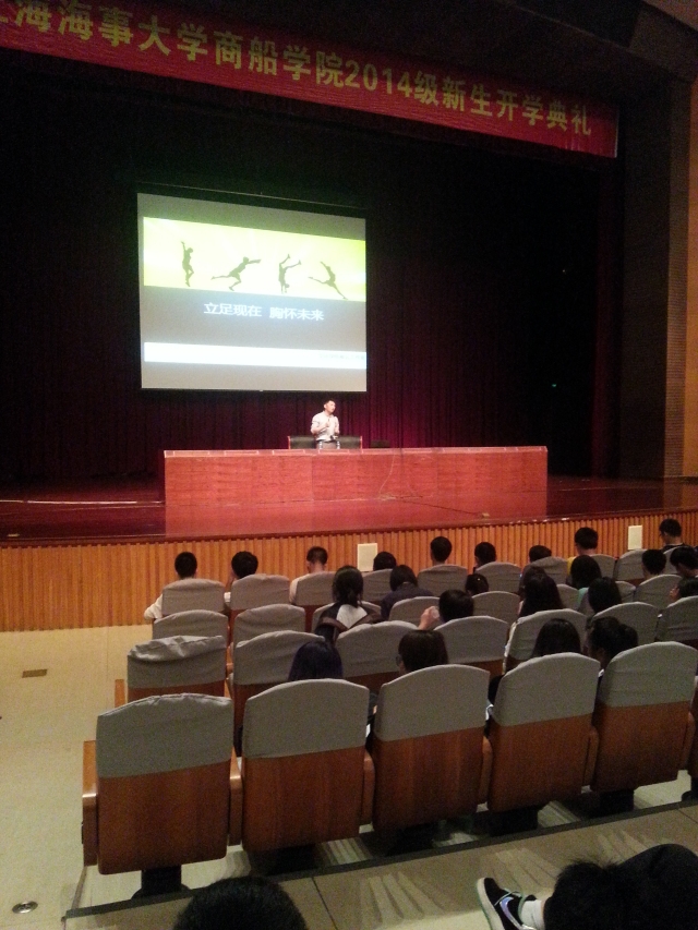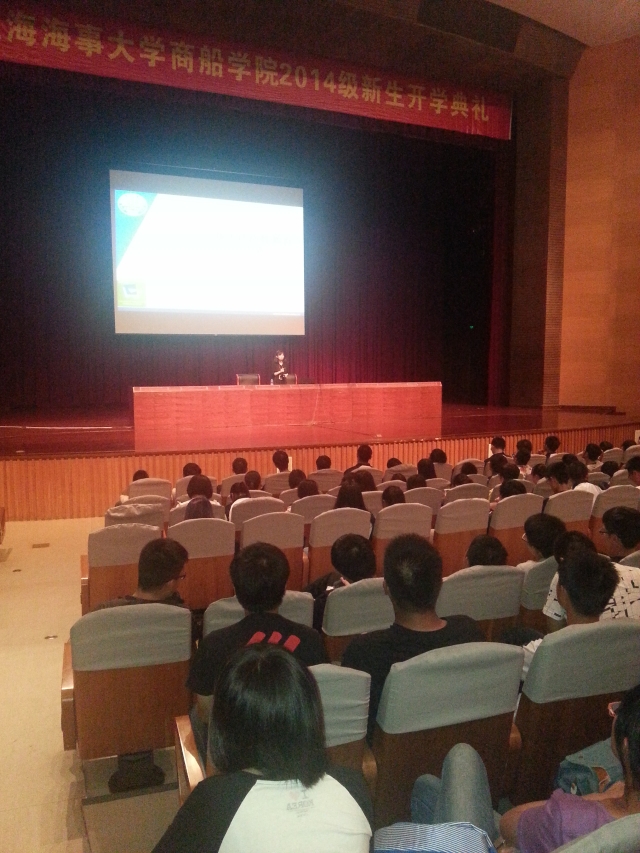 首场讲座由天博体育 党委副书记赵睿老师主讲,题目是《大学与人生》,赵老师饱含着浓郁的人文精神的向同学们多角度、多层次的对大家阐述了她自己对大学的理解,对大学生活的理解,对大学应该做些什么的理解,让与会的同学意识到:大学不仅仅是学习养家糊口的本领的地方,大学之所以为大学,是因为大学有一种有别于企业、军队等的“内在精神”,大学有一种独特的人文气息在支撑着。第二场讲座是刘建老师主讲的《立足现在,胸怀未来》,讲座的内容是关于大学生生涯规划的,包括什么是生涯规划,怎样进行生涯规划,生涯规划的意义何在?刘老师旁征博引,慷慨激昂通过数据和图表融合的方式,结合丰富多彩的案例,引发了新生的思考与共鸣,让新生对今后四年的大学生活规划与管理有了一个大概的目标,为以后的学习和大学经历提供了努力的方向。第三场讲座由陈祯如老师主讲的《大学新生适应教育》,以自己的切身体会,深入浅出的将一些天博体育 和天博体育 的活动,以及在海大的生活经验介绍给在座的同学们,过程中事例生动,感情饱满,引得全场笑声连连,掌声不断。此外,在此次的入学教育中,天博体育 还邀请了校合唱团的两位高声部团长来教新生学唱校歌,以增加同学对海事大学的认同感和归属感。